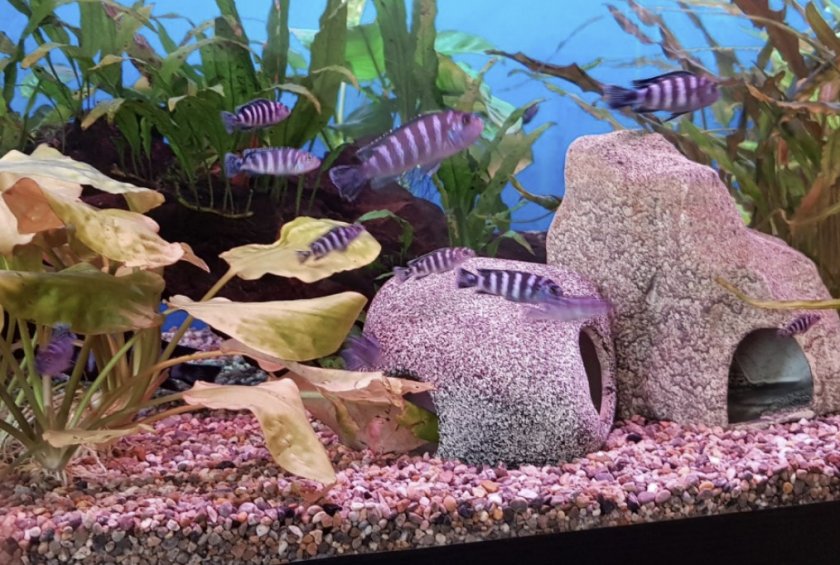 Псевдотрофеусы, как и другие обитатели аквариума, любят богатый подводный мир, поэтому дополнительные декорации не будут лишними. Можно установить различные пещеры, гроты, деревянные коряги, керамику и прочее. При этом нужно заполнить пространство так, чтобы рыбкам осталось достаточно свободного места для активного передвижения.