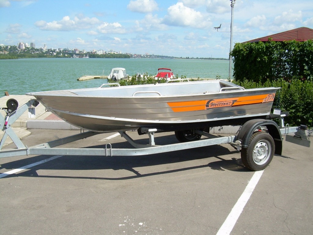 Мощная и надежная алюминиевая лодка с мотором. Оборудована дистанционным управлением, стояночными и ходовыми огнями, трюмным насосом, резервуаром для горючего. Средняя цена лодки составляет 265700 рублей. Минусами можно считать слишком большие размеры и неприятный запах резиновых деталей.