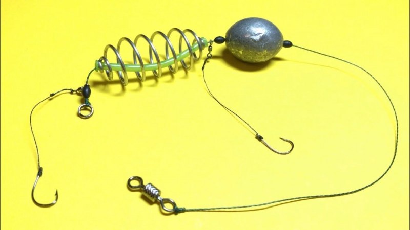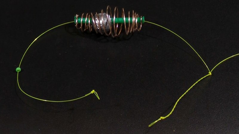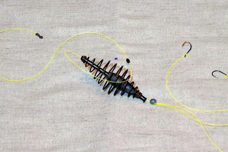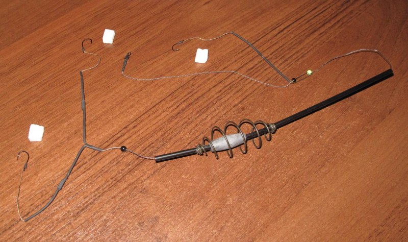 Монтаж данной оснастки заключается в креплении поводка над кормушкой.