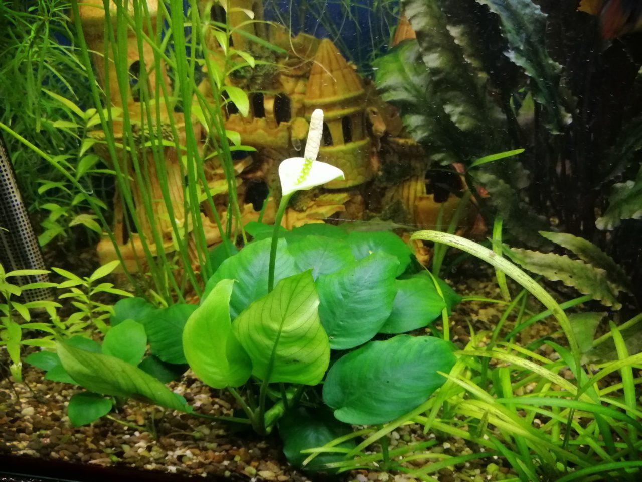 Иногда анубиасы выпускают соцветия даже под водой (хотя при выращивании «на суше» гораздо чаще). Семена из них можно получить только в тепличке. В погруженном виде они не созревают, а цветки просто сгнивают.