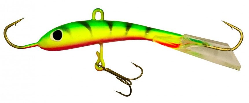 Балансир этой марки часто используется новичками и опытными рыболовами при подледном лове окуня. Длина приманки всего 2 см, масса 4г, зато игра просто виртуозная! Проводки можно выполнять любые, но самыми эффективными оказываются резкие рывки с малой амплитудой. Особенно хорошо балансир зарекомендовал себя при ловле стайного окуня. Имеются разные модели расцветок, поэтому подобрать подходящий вариант для разных водоемов не составит труда. Оптимальный диапазон глубин варьируется от 0,5 до 2 м. Отзывы о балансире только положительные. Единственный недостаток — высокая стоимость.
