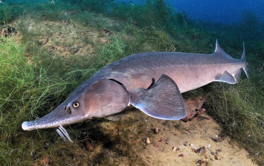 Это самый мелкий представитель этого семейства, так как вырастает в длину не больше 120 см, при весе в 20 кг. Рыба отличается наличием длинных усов, которые достигают рта и узким, но удлиненным носом. При этом, нижняя губа разделена на 2 части, а по бокам тело покрыто сплошными щитками. Такие же щитки защищают рыбу и со спины. В зависимости от места обитания стерлядь может отличаться разным цветом, хотя основная ее раскраска – это желто-белый живот и серо-бурая спина. Все плавники имеют серый оттенок. Различают стерлядь остроносую и тупоносую. Места обитания – северные регионы Сибири.