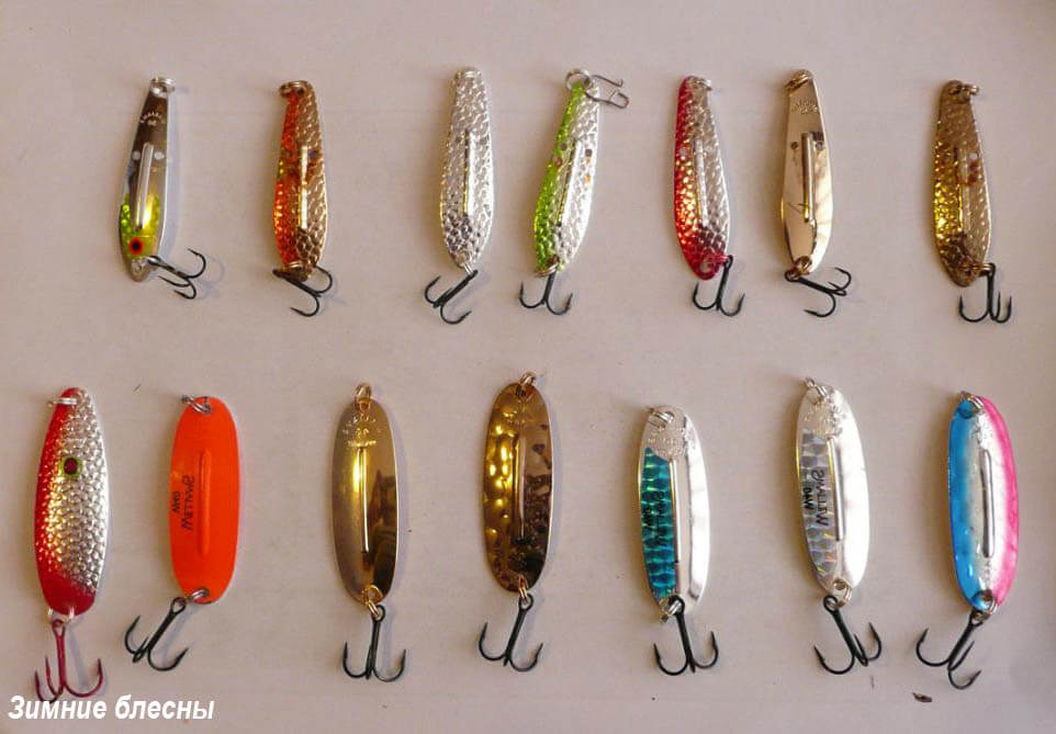 Блёсна на форель зимой предпочтительней брать самых больших размеров. Рыба не так активна и для привлечения её внимания требуется громоздкий и яркий предмет для атаки. Цветовая палитра приветствуется в экзотических раскрасах. Крупная блёсенка создаёт интенсивные вибрационные волны, а яркость раскраса в не очень сильной освещённости воды в зимние дни позволяет сделать проводку приманки заметней и тем самым эффективней.