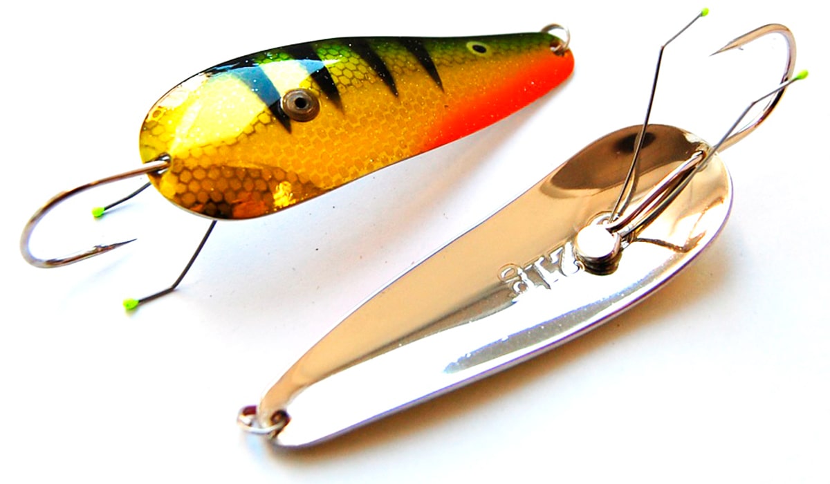 Это пластинчатые приманки выпуклой формы, изготовленные из стали, алюминия или меди. К ним прикрепляется одинарный или двойной крючок, прикрытый маневренным отводком, расположенным параллельно цевью жала и плотно примыкающим к нему. При поклевке защитная пластина отодвигается в сторону, обеспечивая беспрепятственную подсечку хищной рыбы. Этот металлический элемент надежно предохраняет снасти, которые работают в сложной акватории, от зацепов и обрывов.