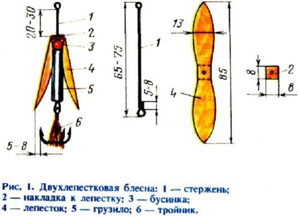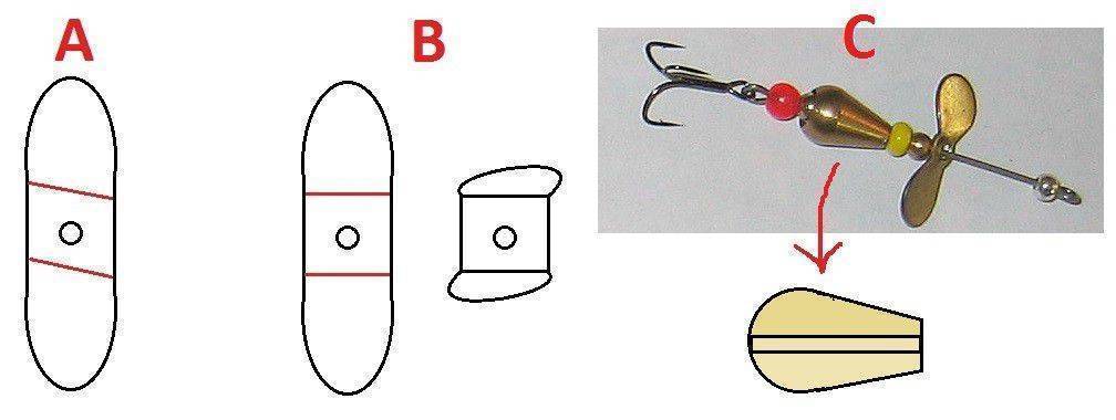 Изготавливать данную приманку с нуля лучше, опираясь на реальный прототип. И также вполне можно найти в сети чертежи похожих заводских изделий. Итак, чтобы изготовить блесну вертушку своими руками, необходимо: