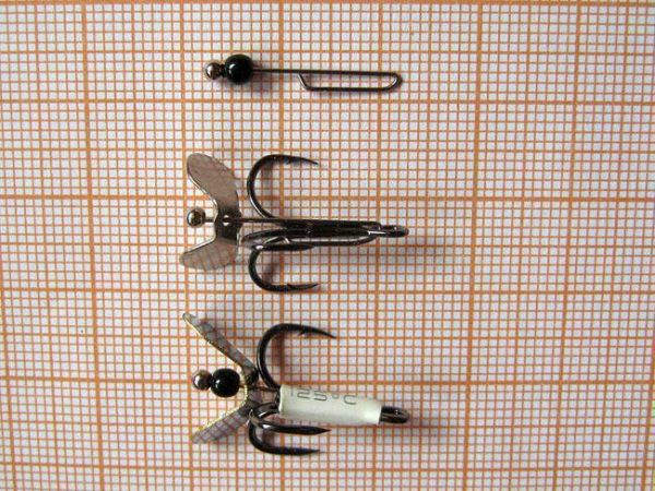 Крючки и тройники. Здесь кто что любит использовать. Подходят как тройники, так и крючки. Можно сделать варианты с офсетными крючками, для работы с резиной. Можно делать мушки на крючках №12 и использовать их