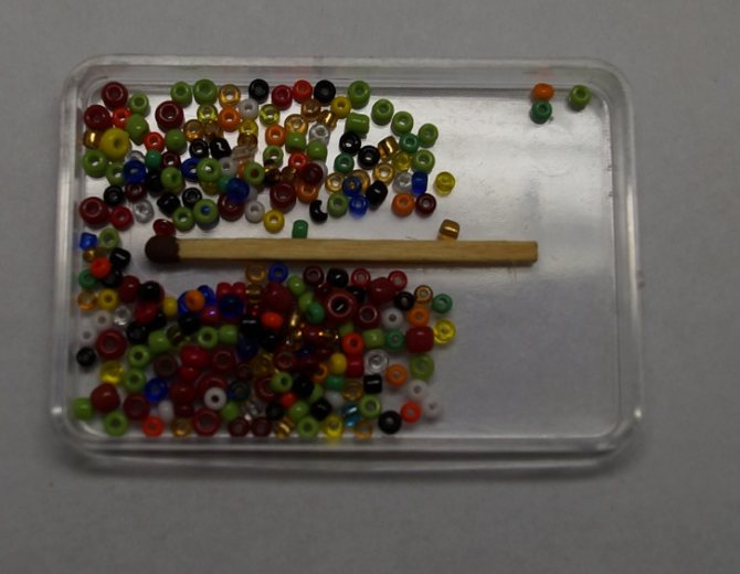 Бисер используется небольшого диаметра, примерно 2 мм. Здесь он не задает какого либо цвета или что-то еще, а просто выступает в качестве подшипника для пропеллера. Тем не менее стоит подбирать контрастные варианты расцветки по отношению к грузу. На картинке внизу показан вариант используемого бисера.