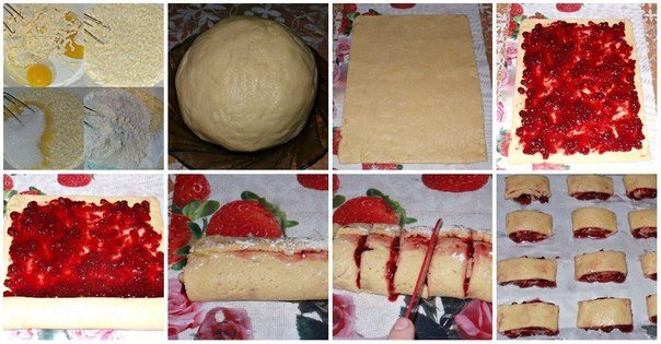 Маргарин (сливочное масло)— 200 г Яйцо— 2 шт Молоко— 2 ст. л. Сахар— 150 г Соль (щепотка) Разрыхлитель — 1 пачка /15 г Варенье (любое) у меня малиновое Мука (примерно) — 480 г