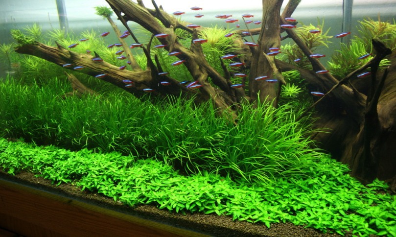 Растительность и рыбки присутствуют в минимальном количестве, внимание отводится камням. Они не должны влиять на качество воды и угнетать флору и фауну