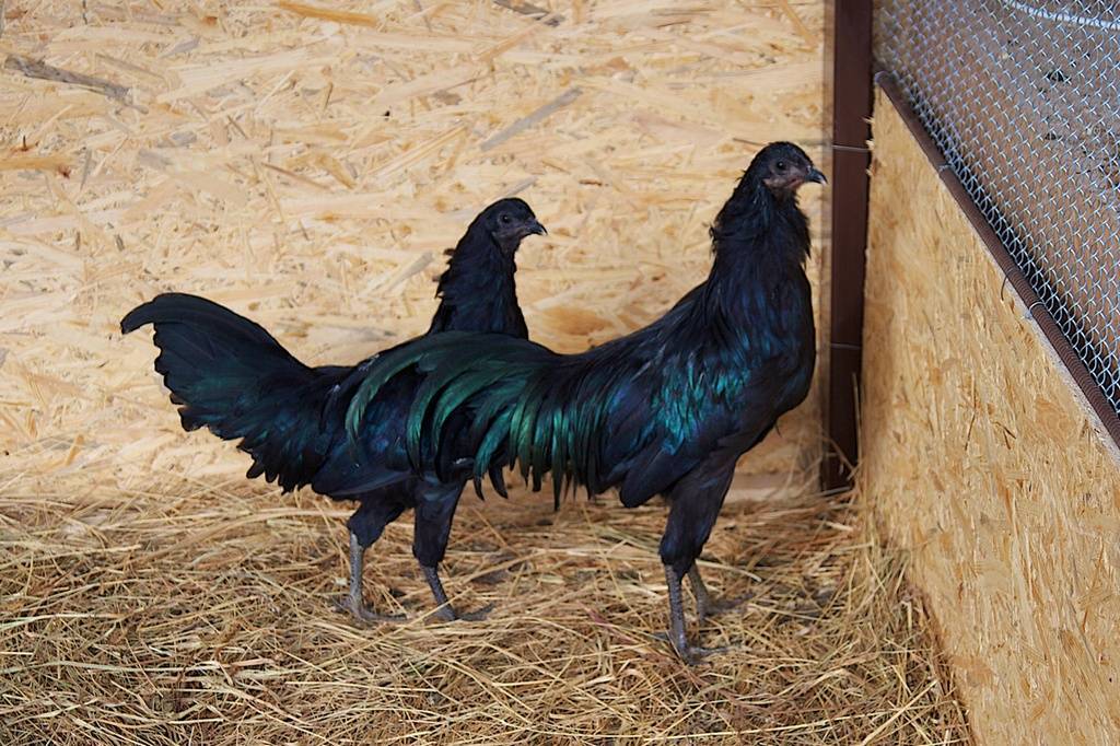 Эти бойцовые курицы могут подняться на приличную высоту. Поэтому их территорию нужно оградить высоким забором. Петухи часто задирают другу друга и могут устроить серьезную драку.