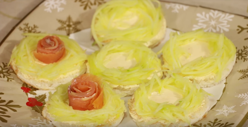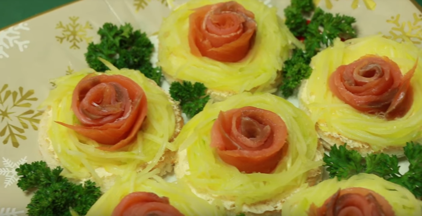 А почему бы не исхитриться: соблюсти традицию и преподнести гостям новинку, которую сразу же сметут со стола? Например, вместо обычной курицы положить в состав салата слабосоленую красную рыбу. И не в хрустальной вазе поставить в центр стола, а в маленьких хрустящих тарталетках?