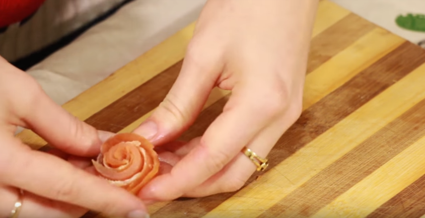 Тут все просто — делаем бутерброды по одному из рецептов, что в статье, а рыбку сверху скручиваем в форме розочки и укладываем сверху.