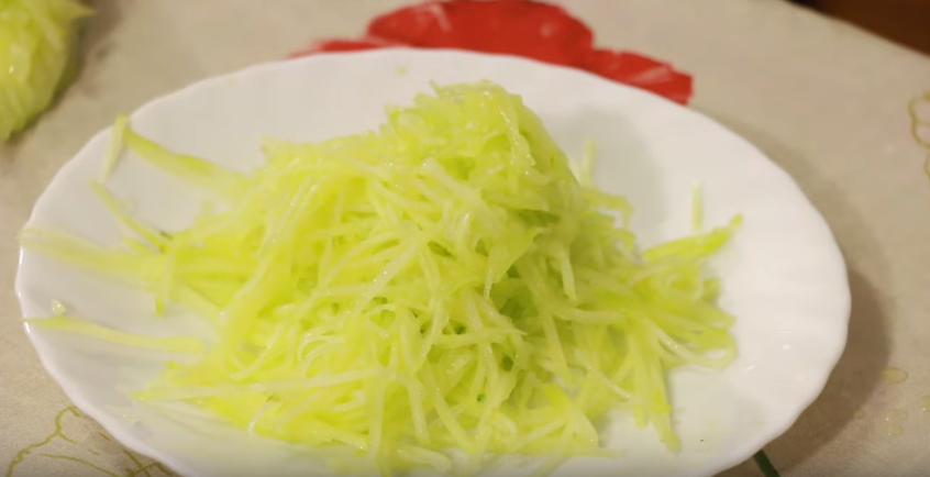 • Подготовленный кусок твердого сыра натирается на мелкой или средней терке;