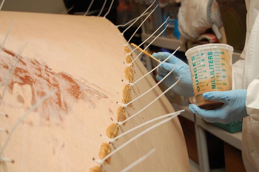 Важно придерживаться расхода эпоксидной смолы в количестве 200 граммов на трехметровую полоску ткани. При сжатии деталей остатки смолы должны просачиваться наружу – это показатель того, что количество эпоксидки достаточное