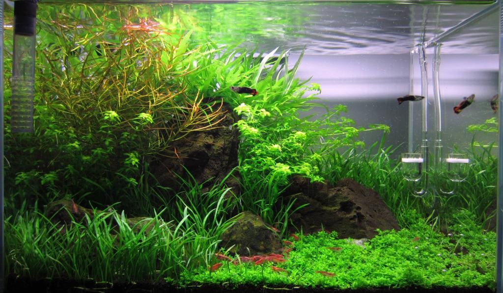 Десяти особям достаточно емкости на 5-10 литров, но предпочтительнее выбирать аквариум объемом от 30 до 50 литров и запускать в него побольше креветок. Связано это с тем, что в маленьком водоеме трудно создать стабильную биологическую среду обитания, а Черри чувствительны к резким изменениям параметров воды. Кроме того, чем больше креветок, тем интереснее за ними наблюдать.