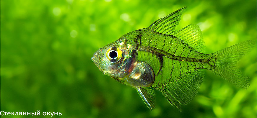 Эта рыбка совершенно незаурядная и выделяется среди соседей по аквариуму прозрачностью своего тела, покровной тканью, которая позволяет рассмотреть внутренности и ее косточки. Именно эта особенность дала название оригинальному обитателю аквариума — стеклянный Окунь (латинское название Chanda ranga). Он очень вынослив по сравнению с другими рыбами. Уход за этим жителем аквариума труда не составит. Ко всему, он спокоен и миролюбив. Итак, как же правильно содержать и разводить стеклянных Окуней?