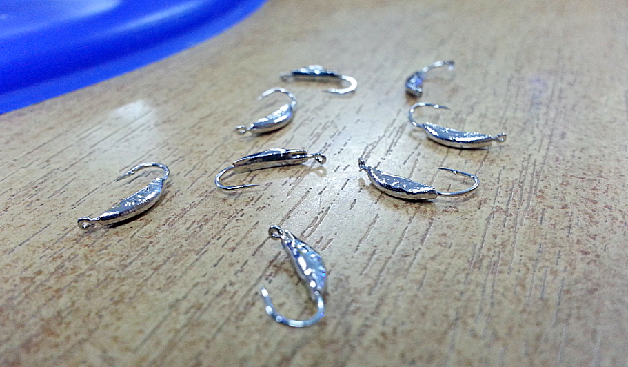 Сплющенная мормышка в воде похожа на бабочку. А при проводке вдоль дна, образуется мутное облако. Рыба обязательно заинтересуется этим явлением и шансы на поклевку увеличиваются. Даже незначительная корректировка формы мормышки, чревато сменой ее поведения. Так что проверять следует сначала дома.