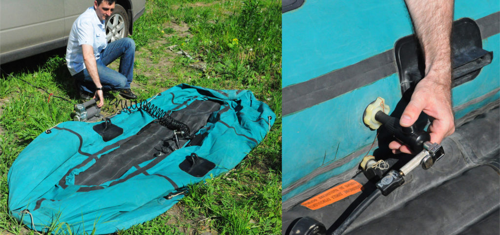 Перед закачиванием воздуха необходимо, чтобы лодка некоторое время полежала в разложенном виде, приспособившись к температурному режиму