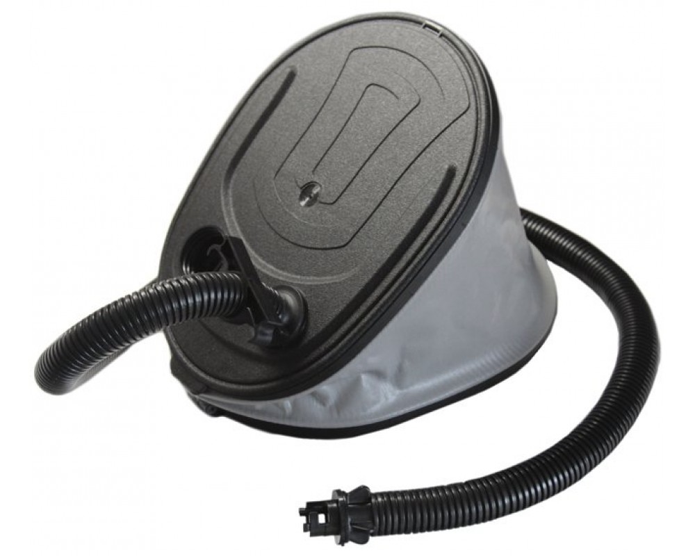Насос-лягушка является одним из самых распространенных, что обусловлено его низкой стоимостью и практичностью. Шланг насоса подсоединяется к клапану лодки, после чего необходимо произвести ритмичные движения ногой, пока изделие не наполнится воздухом.