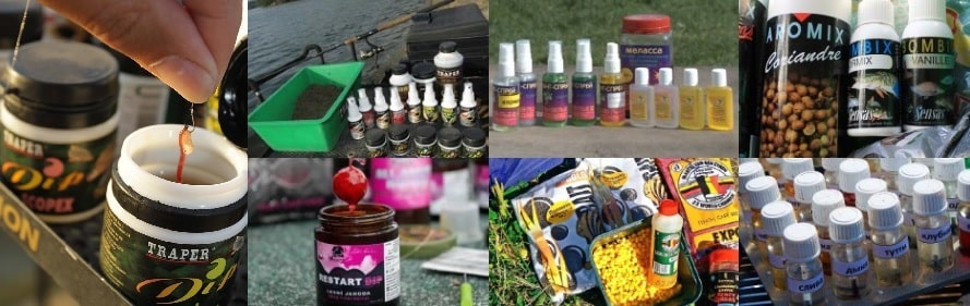 Их применяют как для придания необходимого аромата уже готовым шарам прикормки, так и для ароматизации бойлов (крупных насадок) для карпа. Такие аэрозоли преимущественно имеют ароматы мяса и рыбы, специй и пряностей, молока и фруктов. При помощи подобных ароматизаторов обрабатывают также насадки на хищную рыбу.