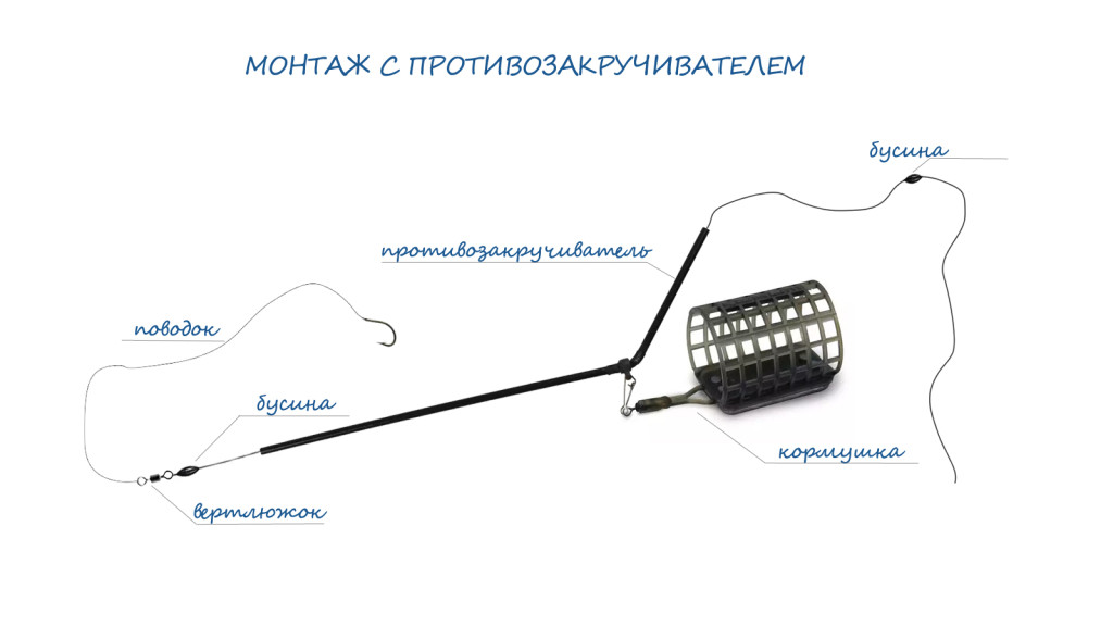 Оснастка с противозакручивателем отлично подходит для освоения фидерной ловли