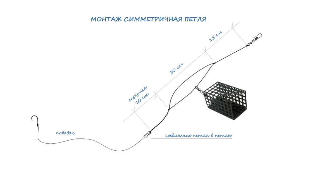 В результате отрезок лески с кормушкой получается длиннее, чем противоположный.