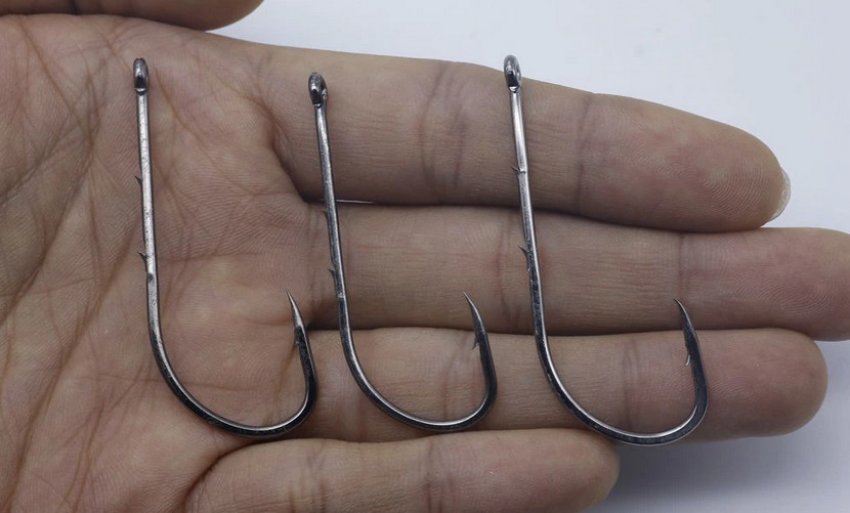 Для карпа и сазана нужен толстый прочный крючок, имеющий короткое цевье, для плотвы и леща выбирайте тонкий с длинным цевьем.