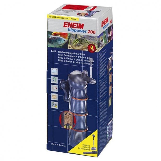 Фильтр высокой мощности от немецкого производителя Eheim подходит для аквариумов объемом до 200 литров. Оборудован круглой помпой, которая задает нужное направление воде. Устройство гарантирует качественную, многоступенчатую обработку. В нижней части располагается корзина предварительной механической фильтрации. После нее жидкость проходит выше через основной субстрат, состоящий из нескольких слоев, и выливается обратно в резервуар. Корзины для губок имеют простое и удобное крепление, позволяющее легко их снимать и переустанавливать. Данная модель может использоваться с пресной или морской водой. Biopower 2412 продается с оригинальными наполнителями и может использоваться сразу.
