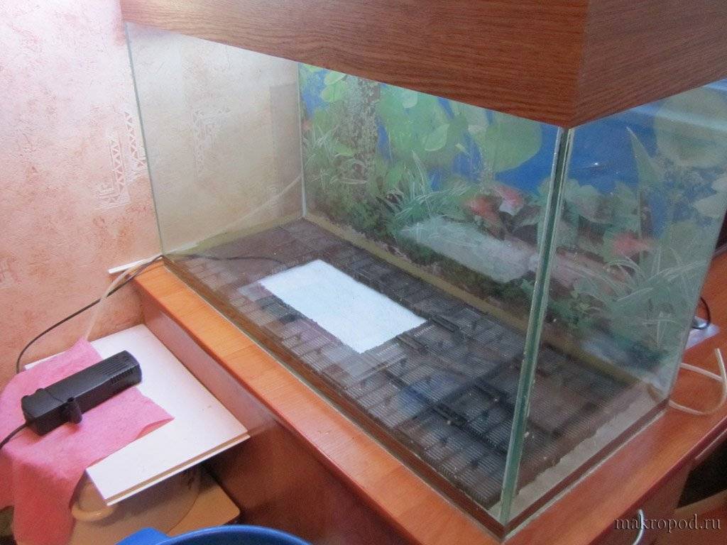Очистить грунт при необходимости можно и без сифона. Делают это следующим образом: