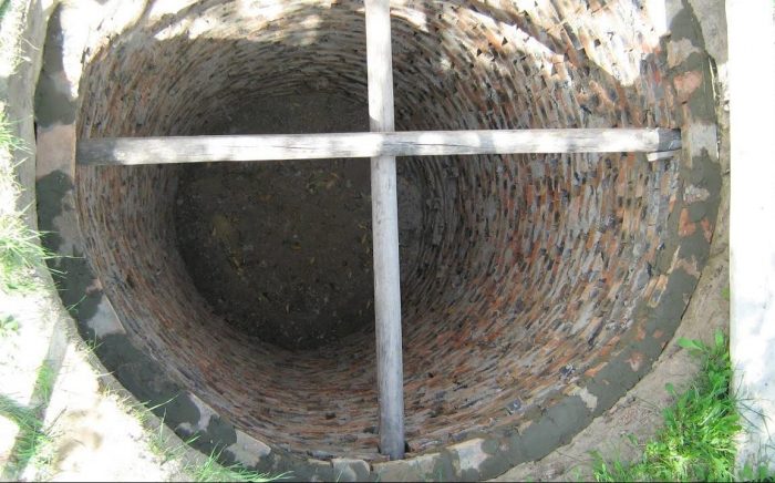 Готовую конструкцию закрывают крышкой, в которой заранее делают люк (диаметром не менее 700 мм) и отверстие для вентиляционной трубы (сечение — 100 мм). Рекомендованная длина вентканала — 700-1000 мм. Следующие операции — заполнение пространства между колодцем и стенками ямы керамзитом, щебнем или гравием, а также теплоизоляция и засыпка крышки.