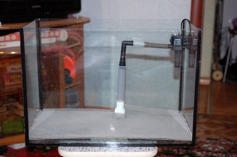 Если все сделано верно, то обитатели аквариума могут наслаждаться новым устройством для обеспечения их комфорта. Если вы планируете соорудить донный фильтр для большого аквариума, то одновременно могут быть установлены несколько помп.