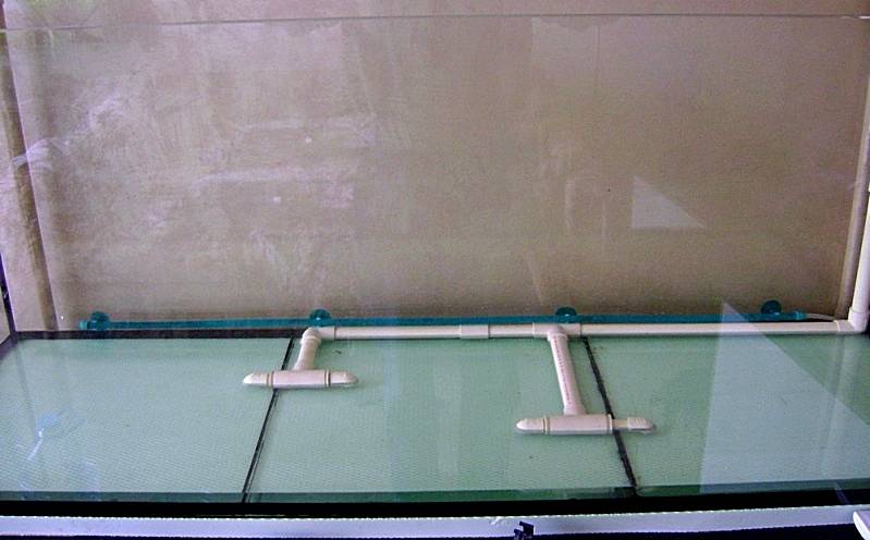 В оргстекле еще нужно будет сделать круговое отверстие для монтажа основной трубы, в которую и будет вставляться помпа. Помпу можно приобрести в любом зоомагазине. Дальше трубы следует спаять между собой, установить оргстекло, основную трубу и помпу.
