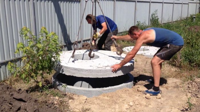 - либо установить кольцо на грунт, а затем методично выбирать землю, все больше углубляя кольцо, опускающееся за счет собственного веса.