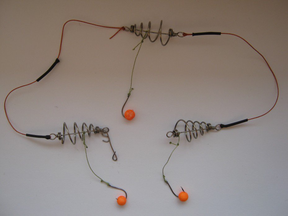 Поводки для ловли карпа на фидер в основном оснащаются одним крючком, вероятность одновременной поклёвки двух карпов очень мала. А вот вероятность потери трофея с двумя крючками очень высока. Причём если интенсивность поклёвок хорошая, то за время, что вы будете выводить карпа с двумя поводками, можно успеть вывести двух, если пользоваться поводком с одним крючком. К тому же вероятность перехлёстов с одним крючком существенно ниже, и вам не придётся раз за разом распутывать.