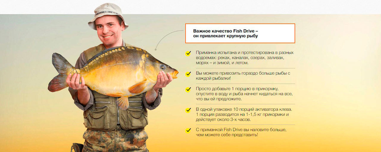 Изготовитель говорит о Фиш Драйве как о продукте, не имеющем аналогов. Производитель называет следующие преимущества активатора клева по сравнению с другими приспособлениями для ловли рыбы: