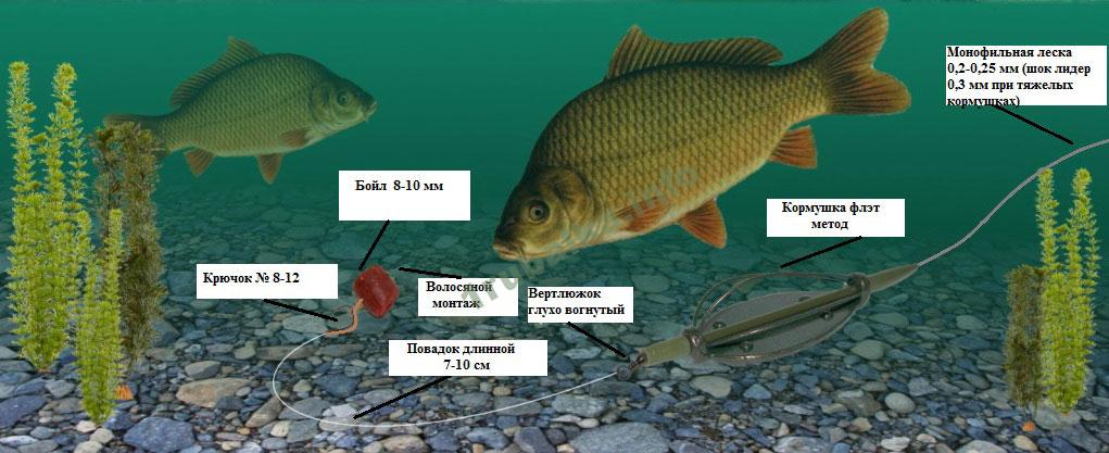 Используемые во флэт метод ловле прикормки, приманки, крючки и поводки.