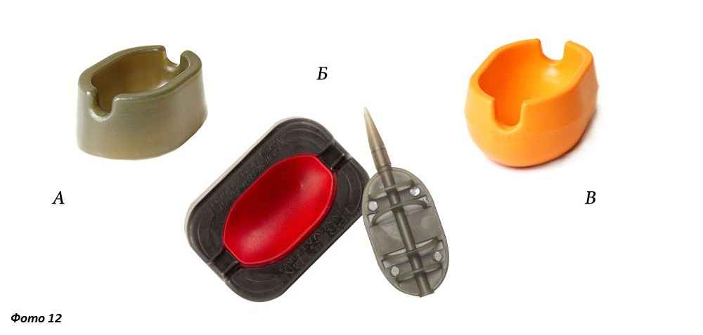 1) Пластиковая пресс-форма без кнопки (фото 12А). Она относительно дешевая, простая в обслуживании и использовании, но конструкция не подразумевает никакого приспособления для доставания флэт-кормушки после прессования прикормки, что вызывает определенные неудобства на рыбалке.