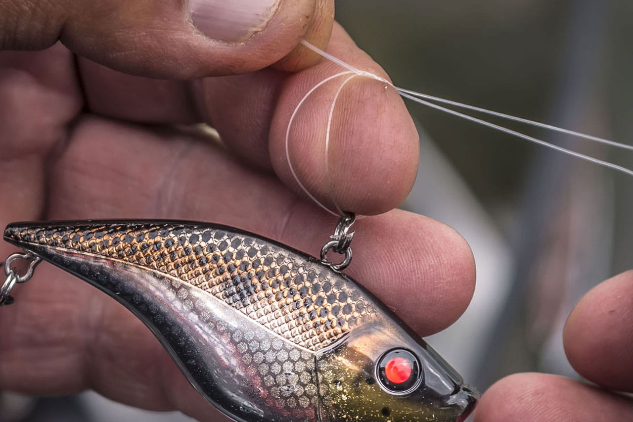 - Смочите леску водой и затяните узел;