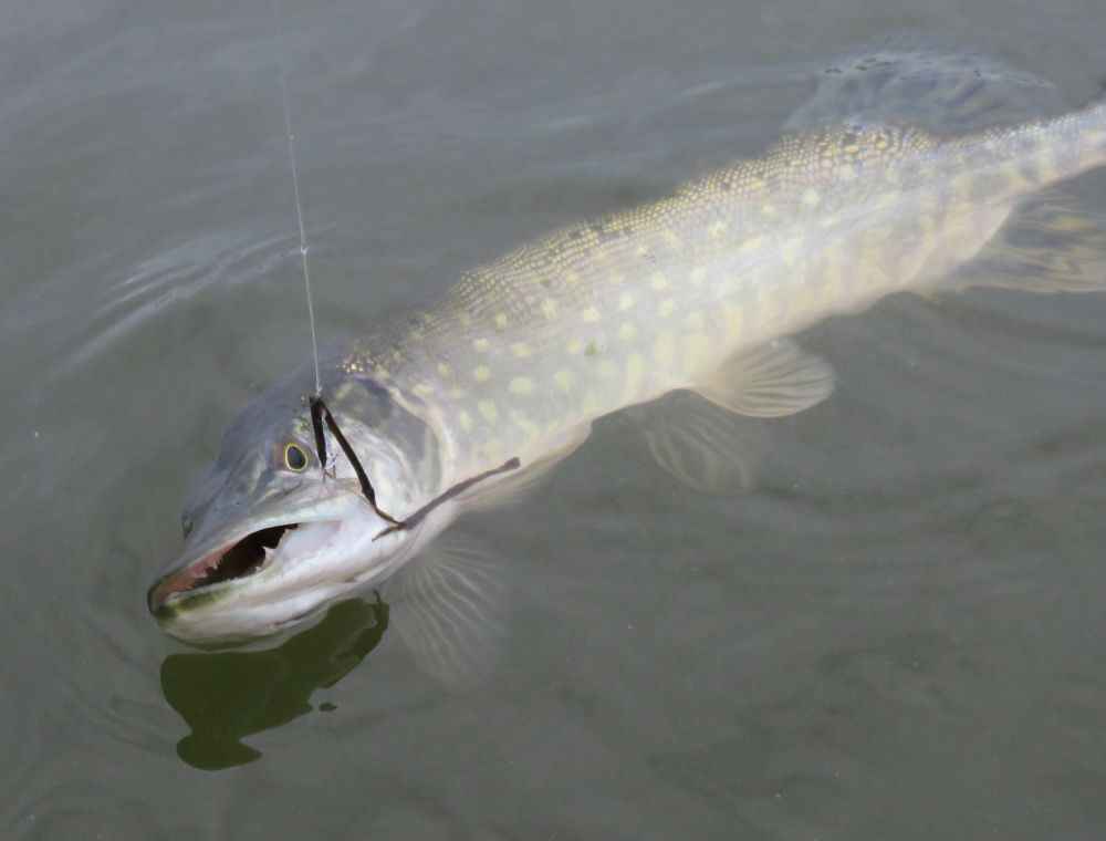 Поводок из флюра заведен за ус щуки, обреза можно не боятся