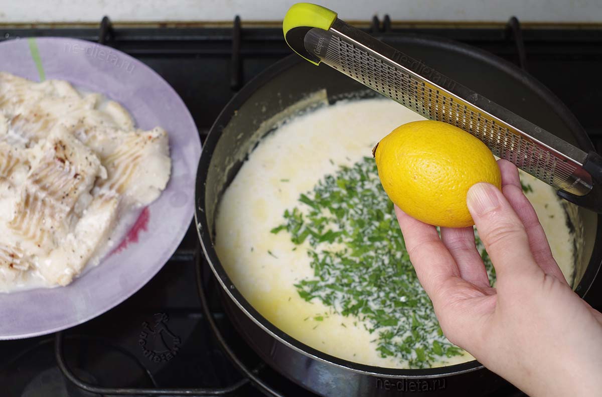 Налейте сливки в небольшую миску. Приправьте молотым перцем, посолите. Добавьте лимонный сок, размешайте. Пусть вас не смущает, если под действием лимона сливки немного створожатся.