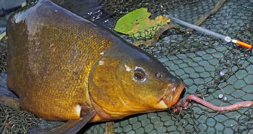 - Чтобы достать аккуратно линя из воды, непременно нужно пользоваться специальным подсачком. Это поможет избавиться от лишнего шума, что не будет отпугивать рыбу.