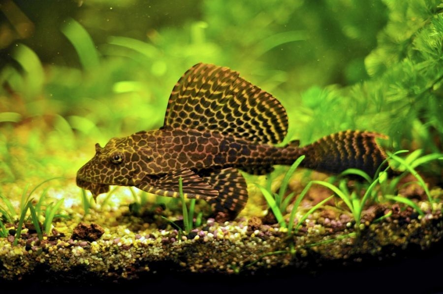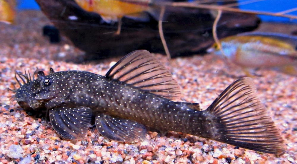 Очень выносливая и стойкая рыбка, которую используют для удаления водорослей и растительных остатков со дна. Этот сом очень быстро передвигается по дну и вертикальным поверхностям, зависая благодаря присоске.