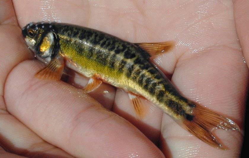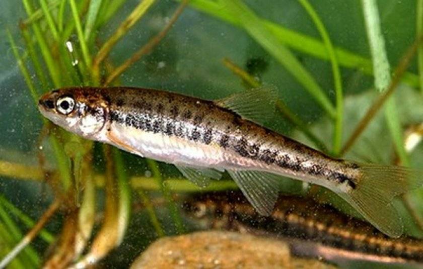 Гольян обыкновенный — сравнительно небольшой обитатель природных водоёмов, ведь длина его тела не превышает 14 см. Однако в аквариумах это значение и того меньше: всего лишь 8-10 см, при весе 4-10 г (размер самцов обычно меньше параметров самок).