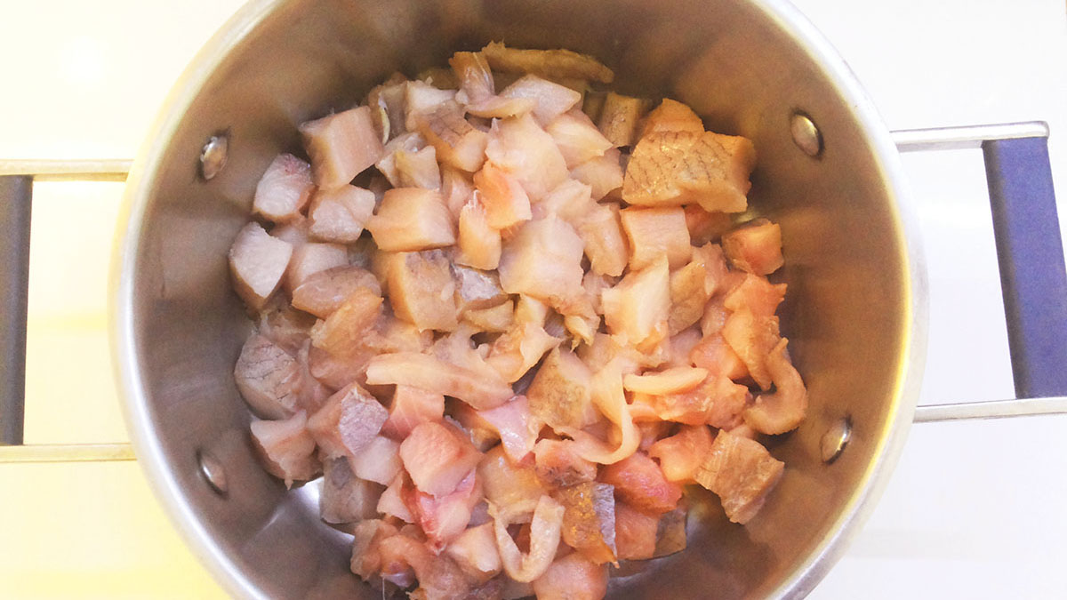 - Перед использованием рыбу нужно почистить, не снимая шкуру. Следует удалить все кости. Филе со шкурой следует нарезать на полоски или небольшие кусочки размером около 1 см шириной.