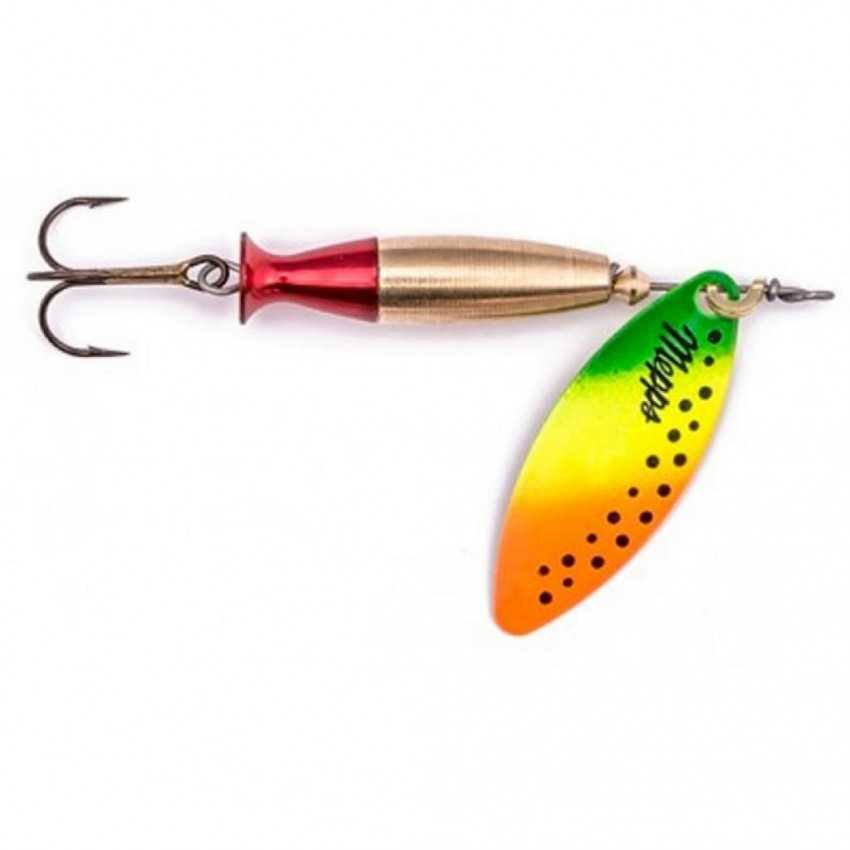 - Ивовый лист. Вариант с самым узким и длинным лепестком. Вращаясь под углом около 30 градусов, он обеспечивает стабильную игру на течении или при быстрой проводке.