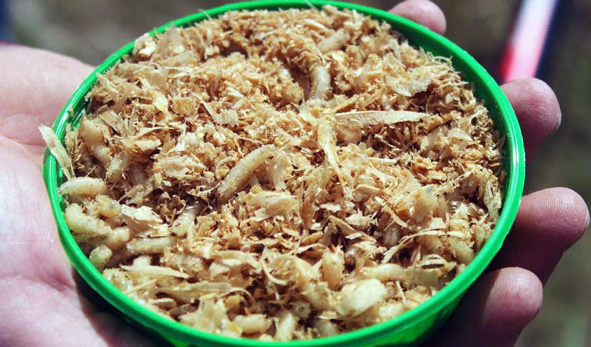 Всегда просите добавить к опарышу немного кукурузной муки или опилок. Это помогает содержать приманку в чистоте, а также поглощать избыточную влагу.