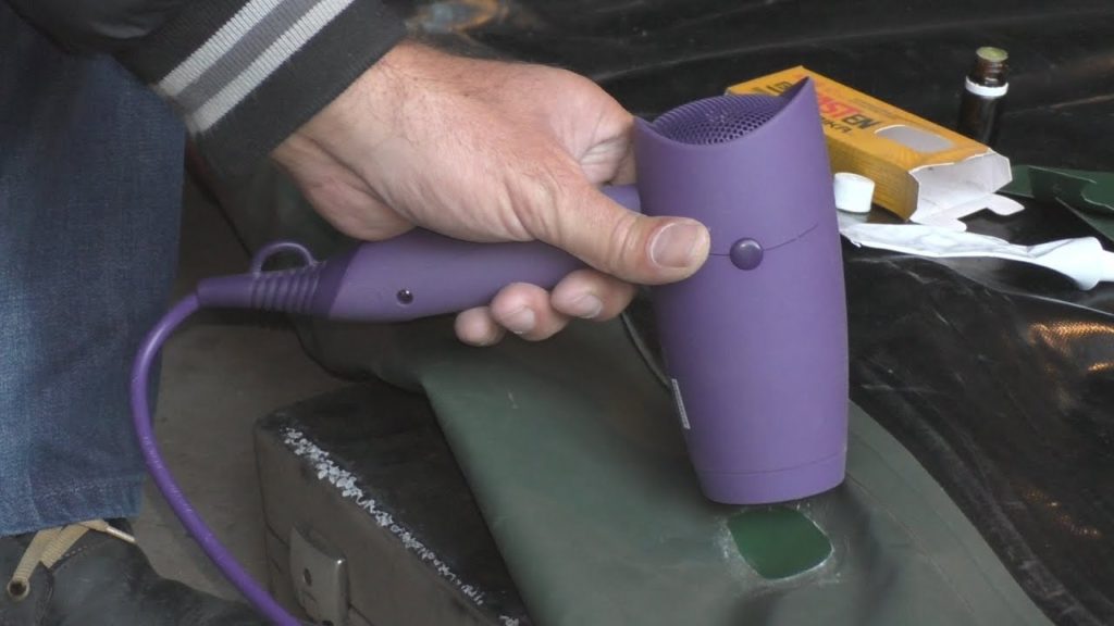 - Иногда приходится сушить материал лодки или заплатки во время ремонта, это несложно сделать с помощью обычного фена;