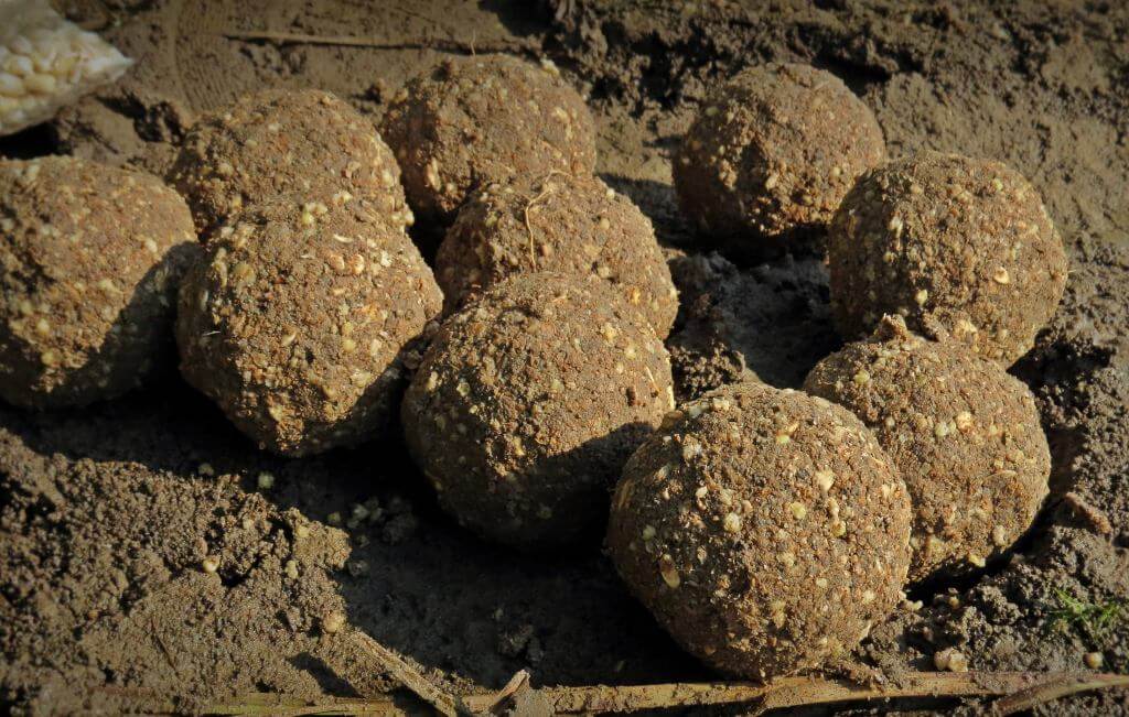 Закармливать рекомендуют заранее, до начала ловли, 2-3 места. Знатоки советуют заниматься этим в одно и то же время, желательно на рассвете. В заготовленную смесь добавляют грунт либо глину, замешивают с помощью воды, взятой из пруда, реки, на котором планируется ловля. Из настоявшейся 10-15 минут массы лепят шары диметром 5-7 см различной плотности.