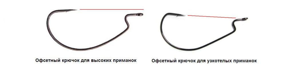 Высота в основном имеет решающую роль при ловле виброхвостами. Если загиб офсетного крючка меньше высоты виброхвоста, то его придется продевать через тело приманки и выводить жало наружу. А это уничтожит такую важную характеристику, как незацепляемость оснастки.