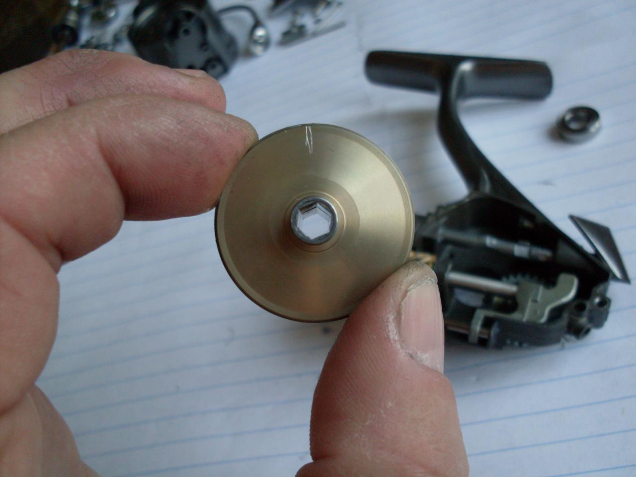 Чтобы отрегулировать шпулю с передним тормозом, сначала нужно ее извлечь. Для извлечения элемента катушки надо снять ручку регулятора и открутить фрикцион.